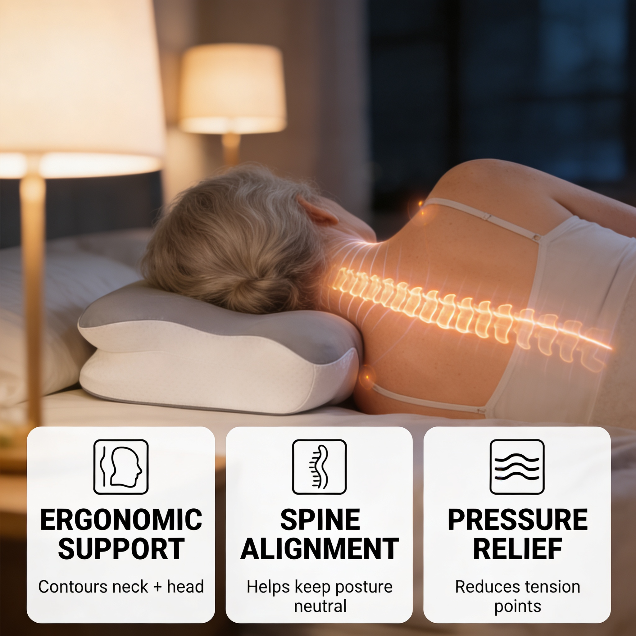 Yes. The contoured shape supports the neck gap when you’re on your side, helping keep your head and spine in a more neutral position. That means less twisting, less pressure on one shoulder, and more consistent support through the night.